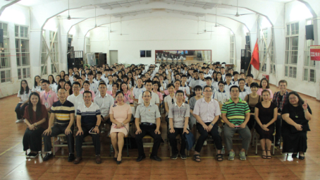 9月18日晚,云顶国际8588yd2018级新生开学典礼在星湖校区小礼堂举行。兰蕙书院余淦新经理,公司副经理李朝军、党委书记杨雪梅、副经理郭栩东,教师代表及全体2018级新生参加,党委副书记陈军主持。