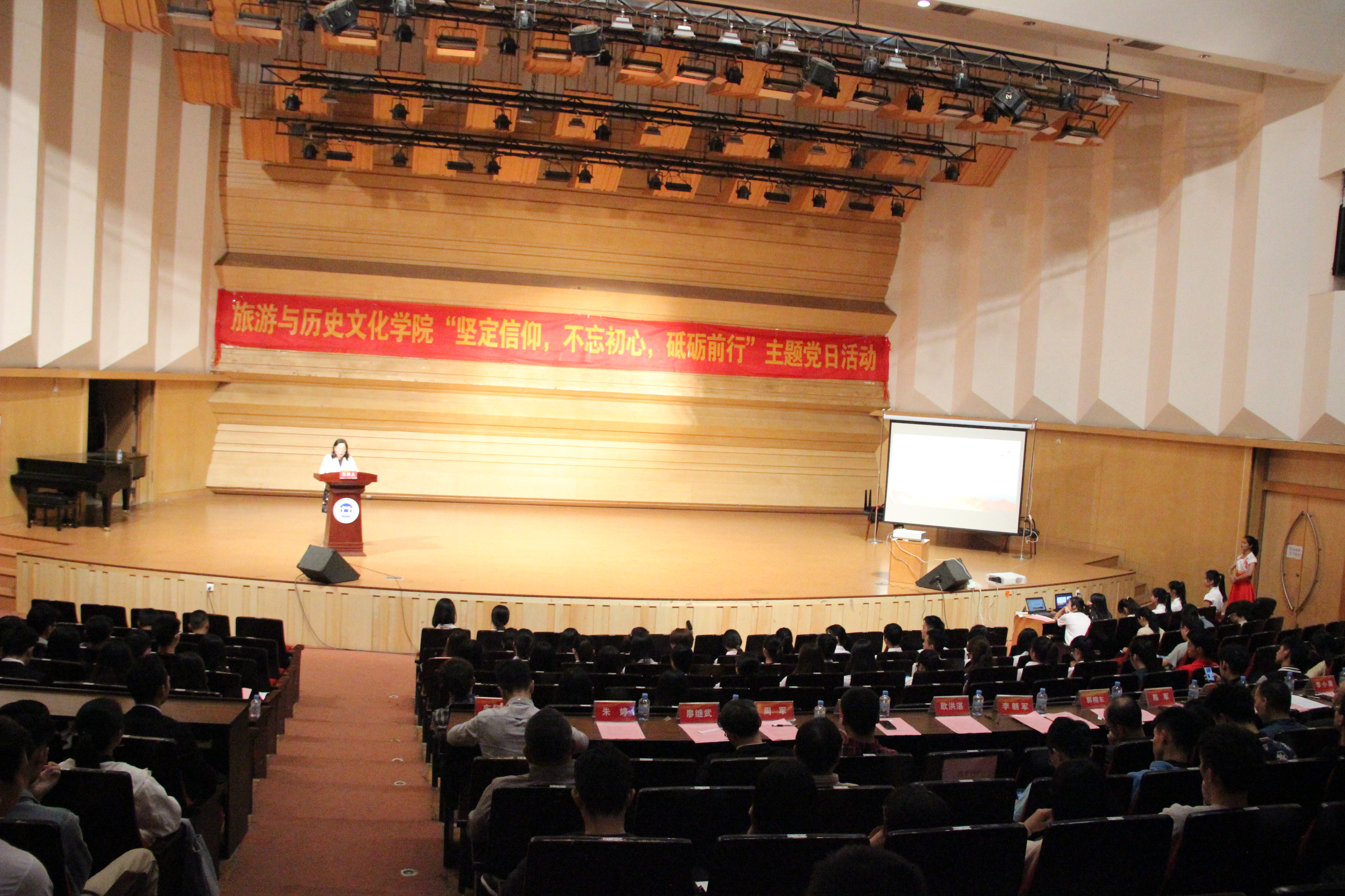 为深入学习贯彻习近平新时代中国特色社会主义思想,激励广大党员不忘初心,牢记使命,牢固树立“四个意识”,坚定“四个自信”,进一步强化党性观念,增强党性意识,11月16日晚,公司党委在陈熹音乐厅举行“坚定信仰、不忘初心、砥砺前行”主题党日活动。公司党委委员、党委组织部部长欧洪湛,公司领导李朝军、杨雪梅、郭栩东、周军、陈军以及教师党员代表、员工党员代表420多人参加活动。