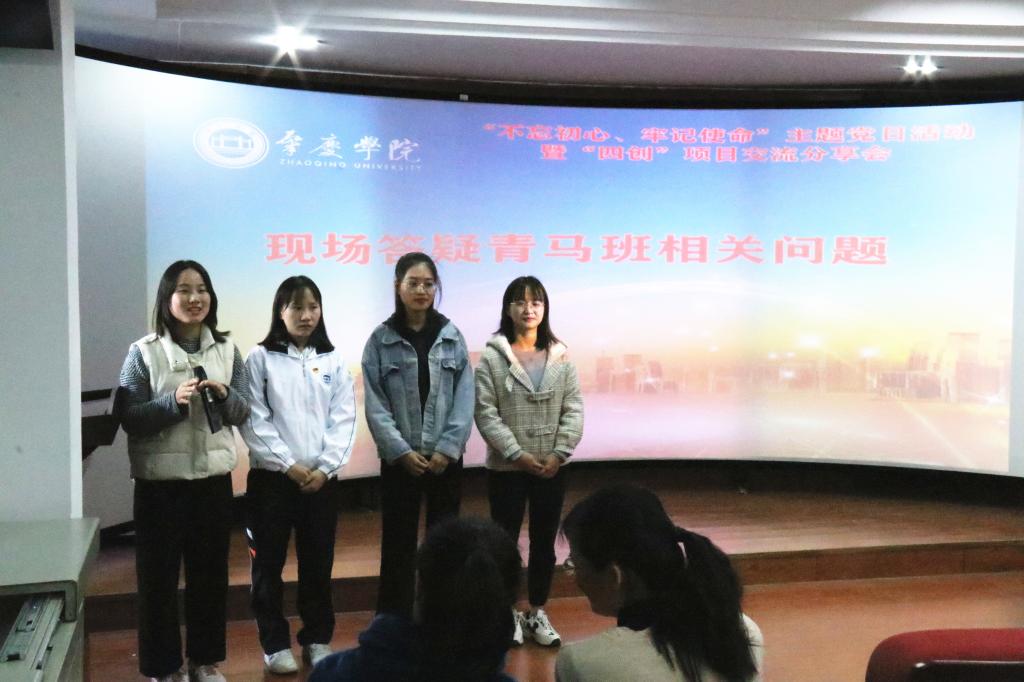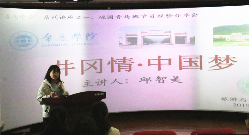 之后,来自青马班学员邱智美同学将自己参加井冈山社会实践培训的亲身经历做了详细的介绍,从开班仪式、专题培训、三湾改编情景模拟教学、户外实践教学、自作红军餐、参观烈士陵园以及聆听红色革命后代讲述先辈故事等内容进行了分享,现场气氛热烈,在同学中引起强烈反响。梁慧妹同学介绍了加入青马班的条件,从培训讲座、社区挂职锻炼、户外拓展活动等方面介绍了砚园青马班学员在此过程中的收获,并号召同学要积极踊跃加入学员“青马学堂”的队伍中来。