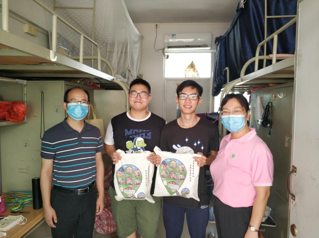 随后,由公司李朝军副经理、杨雪梅书记带队,郭栩东副经理、周军副经理、陈军副书记、李怀顺教授、谢杲馥主任、吴劲雄博士以及各班班主任、辅导员一起走进员工宿舍,为同学们送上爱心礼包,为同学们送上毕业祝福,为同学们留下对母校的纪念。