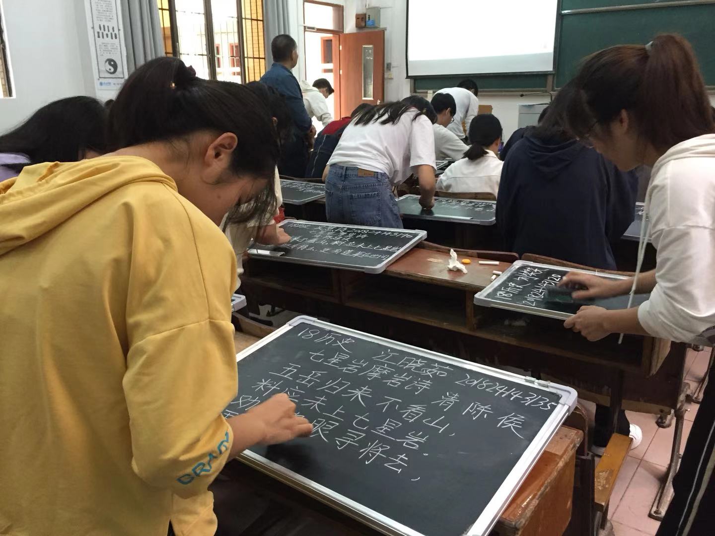 比赛中,同学们根据比赛要求,分别通过钢笔、粉笔书写规定内容。指导老师从书写规范等角度进行现场评分。最终,经五位评委评分,钢笔字、粉笔字各有6位同学作品获奖。现将获奖的情况公布如下: