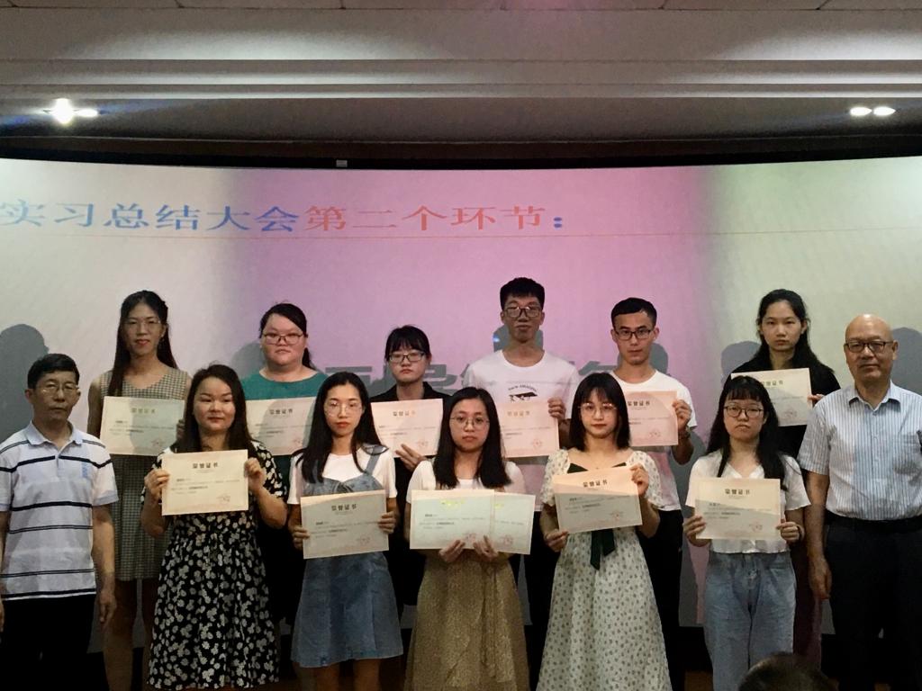 实习过程中,在指导老师的耐心指导下,同学们高质量的完成实习任务,涌现出一批优秀的实习生代表。会上,分别为优秀实习小组、优秀指导老师、优秀实习教案、优秀教研论文等获奖师生颁奖。