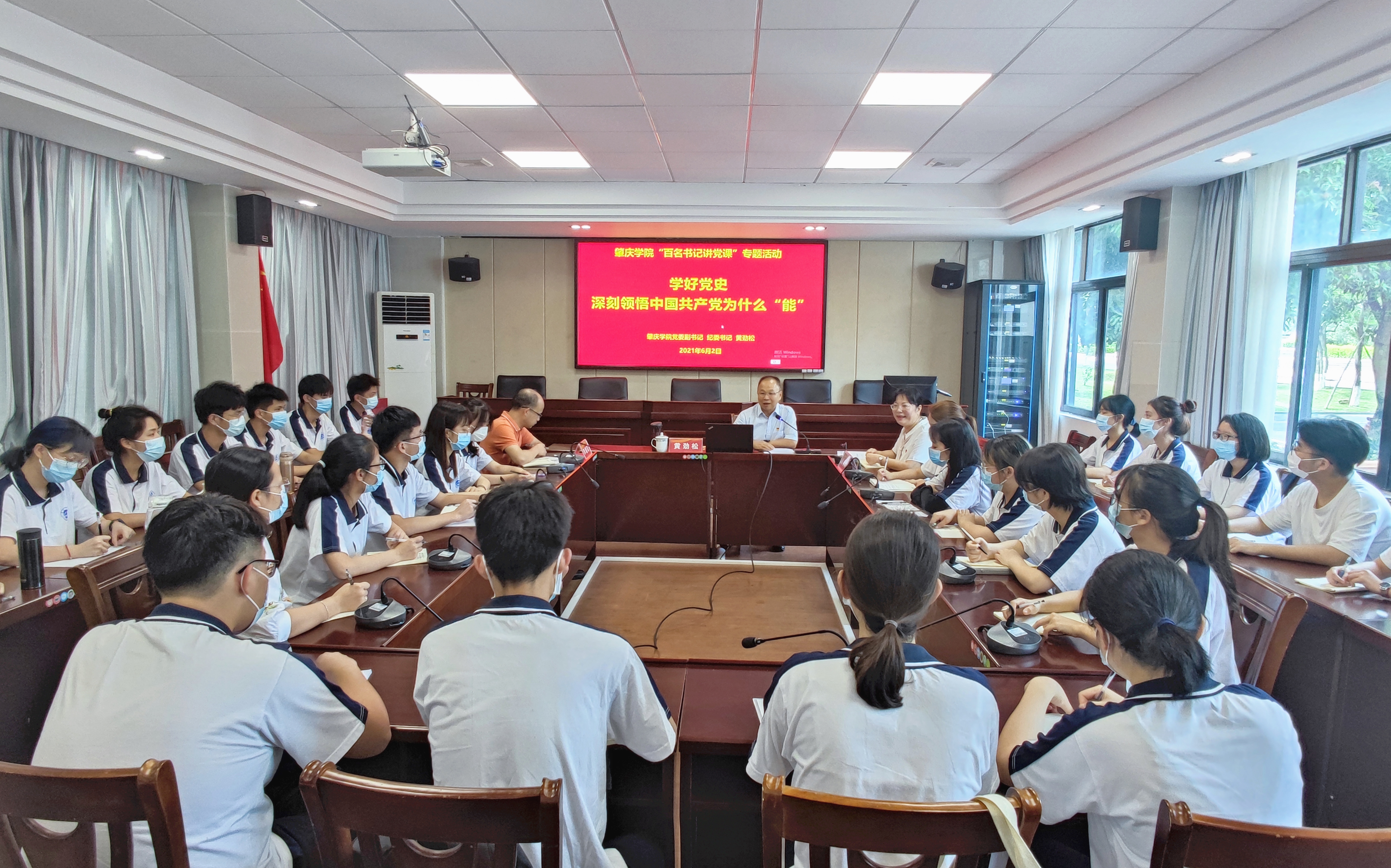 为持续推进党史学习教育稳步开展,贯彻落实“百名书记讲党课”专题活动的要求,以实际行动迎接建党100周年,6月2日,公司党委副书记、纪委书记黄劲松来到云顶国际8588yd,以《学好党史,深刻领悟中国共产党为什么“能”》为题,为公司师生讲授专题党课。党课由公司党委书记杨雪梅主持,公司党委副书记、经理李朝军,教师代表、员工党员、发展对象、入党积极分子共30余人参加学习。