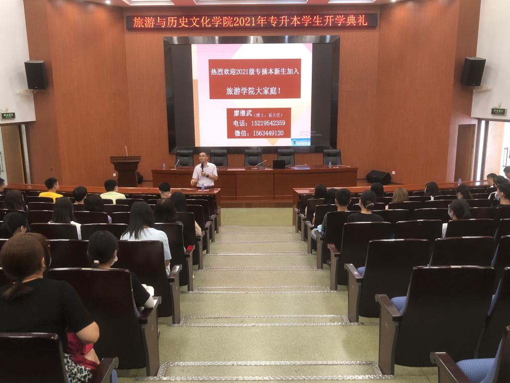 旅游管理系主任廖继武博士从专业团队、人才培养目标、主要修学课程三个方面,向新生们介绍了旅游管理的专业课程。