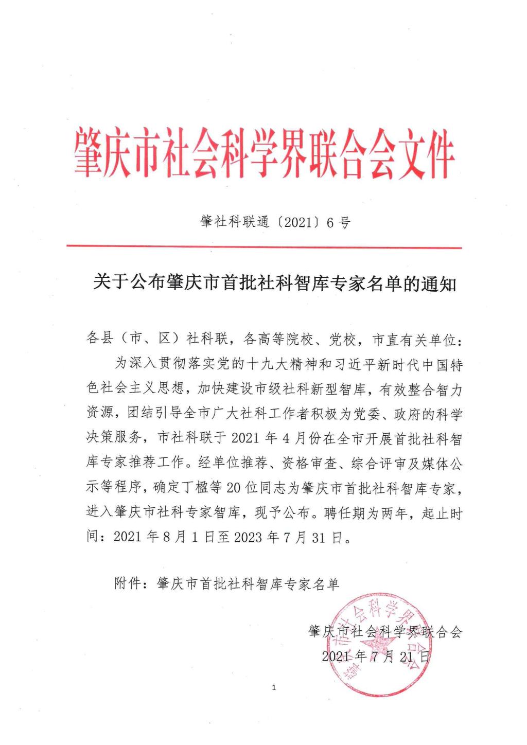 关于公布肇庆市首批社科智库专家名单的通知(肇社科联通【2021】6号).pdf