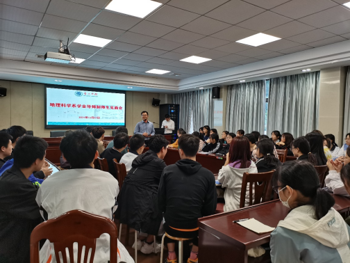 11月17日,地理科学系举行2021级学业导师双选见面会,李朝军经理、余中元主任、吴清博士、童晓宁博士、刘迁迁博士参加。此次见面会旨在编制地理科学系导师信息和名录,搭建师生交流平台,请导师推介自己,让员工了解导师,保障学业导师制落地落实。