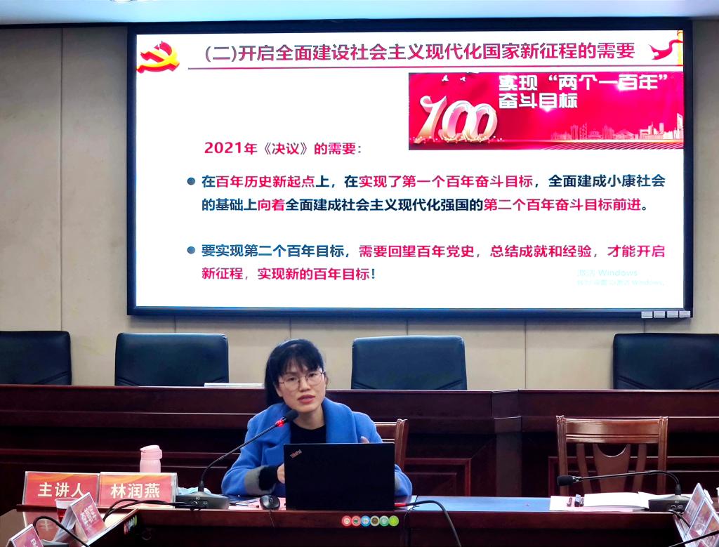 在学习会上,林润燕从党的百年奋斗重大成就和历史经验总结的时代背景、党的百年奋斗重大成就的科学概括、党的百年奋斗理论思想的科学定位、党的百年奋斗基本经验和历史意义的深刻总结四个方面对党的十九届六中全会《决议》进行了深刻解读,结合党务工作者的岗位职责,勉励大家要在新的长征之路上,必须保持战略定力,拥有咬定青山不放松的勇气,为实现公司高质量发展不断努力奋斗。