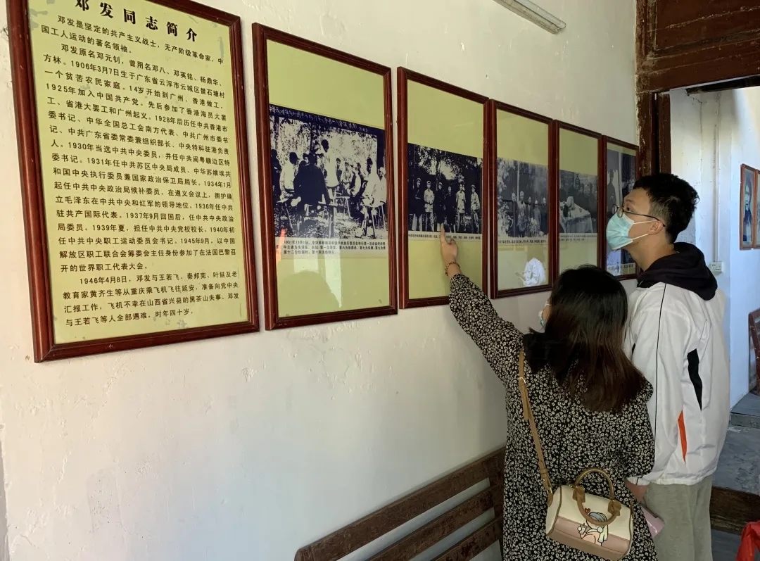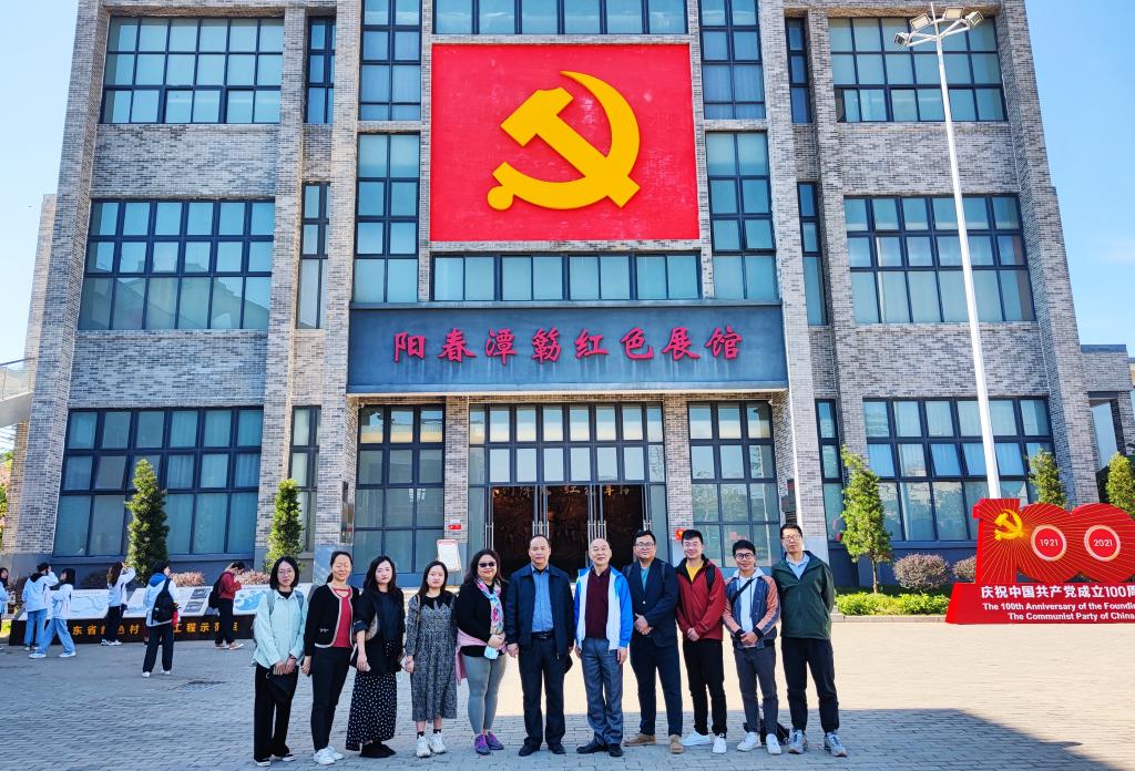 为进一步推进党史学习教育,提高师生的党史学习热情,11月28日,由陈军副书记、肖光明教授、实践教学部符兰冰主任、历史系严智德主任、刘晓聪博士、蔡群博士、教务员胡永霞、实验员徐莉莉、办公室陈喜钠老师、辅导员车翔宇、陈瑜瑕等老师带队带队,旅院师生们先后前往阳春潭簕村红色展馆和云浮邓发故居开展主题党日活动。