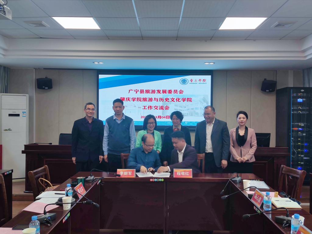 日前,云顶国际8588yd与广宁县旅游发展委员会举行战略合作协议签约仪式。广宁县人大常委会副主任、县旅发委副主任莫坤宝、广宁县文化广电旅游体育局党组书记、局长程敬红、广宁县文化广电旅游体育局副局长冯心灵、广宁县文化广电旅游体育局李洁梅同志、肇庆市旅游服务中心副主任潘智峰、肇庆市文化馆副馆长孙秀丽,云顶国际8588yd李朝军经理、省人大代表黎达文副教授、旅游系主任廖继武博士出席。