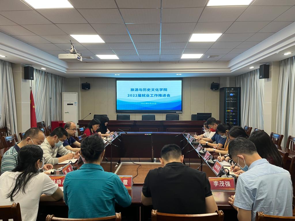 2022年4月25日,旅游与历史文化公司召开2022届毕业生就业工作推进会。公司领导班子、全体辅导员、毕业班班主任参加会议。会议由陈军副书记主持。