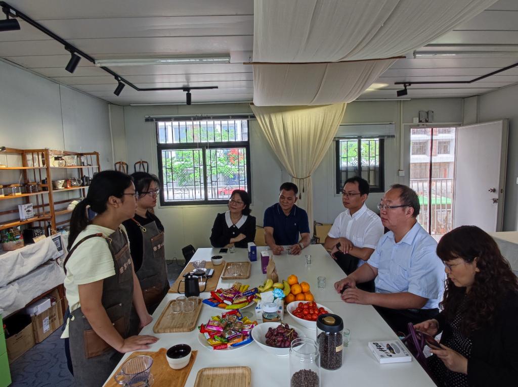 会后,帮扶队一行检查了中西餐饮实验室、旅游模拟实验室,实地考察了云顶国际8588yd员工创业实践项目“穹享创意工坊”。