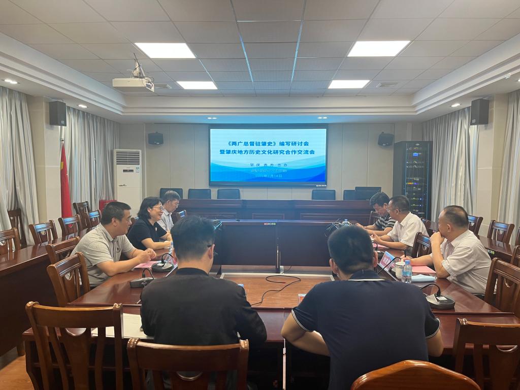 6月14日,肇庆市委党史研究室(市地方志办)周益成主任、刘建勋副主任、陈军强科长莅临公司出席《两广总督驻肇史》编写研讨会暨肇庆地方历史文化研究合作交流会。公司党委书记杨雪梅、副经理周军、学术委员会主任李怀顺教授以及历史系副主任严智德博士、阮宏博士参加。双方深入开展座谈交流,探索校地合作新途径,共同为服务肇庆地方历史文化研究献计出力。周军副经理主持会议。