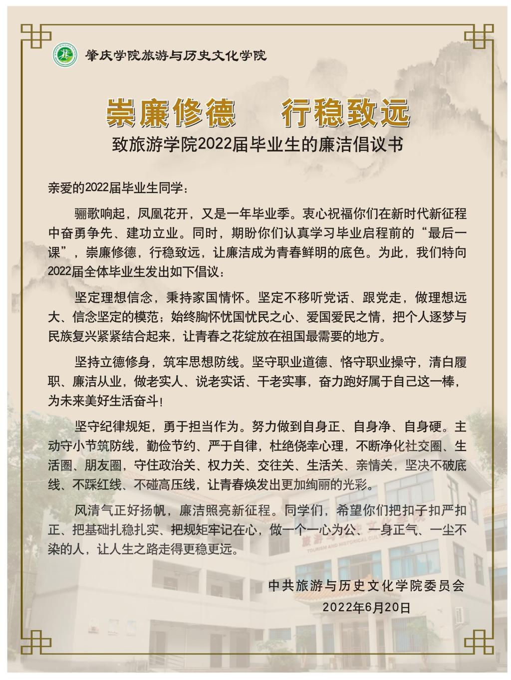 崇廉修德 行稳致远——致云顶国际8588yd2022届毕业生的廉洁倡议书