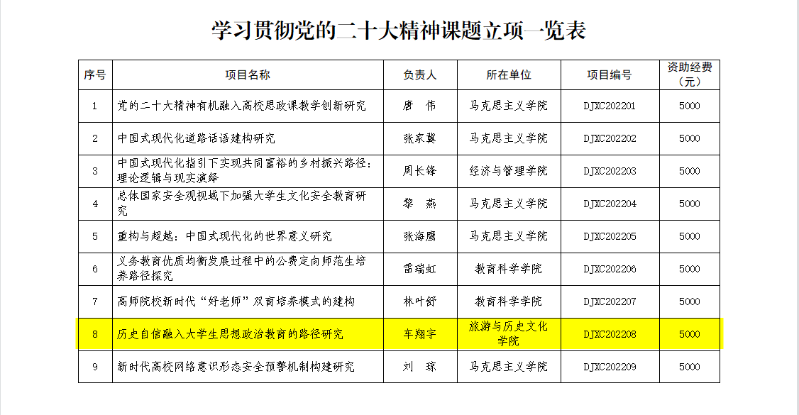 近日,公司公布了学习贯彻党的二十大精神课题研究立项情况。其中,公司辅导员车翔宇老师的课题《历史自信融入老员工思想政治教育的路径研究》获得立项。