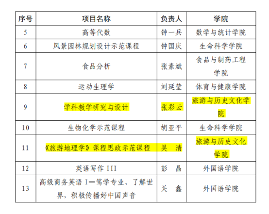 示范课程2项:张彩云《学科教学研究与设计》、吴清《旅游地理学》课程思政示范课程。