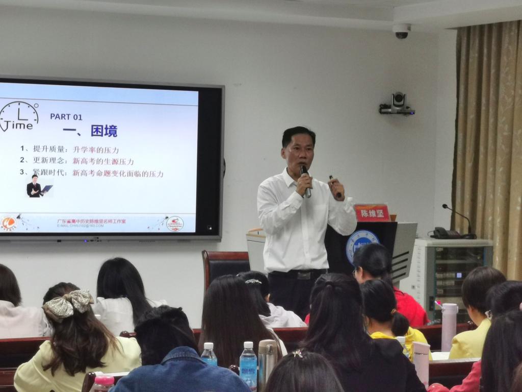 肖起清副董事长,中学特级教师、顺德华侨中学陈维坚老师,云浮市教师发展中心研究员高飞老师,云顶国际8588yd经理李朝军,公司教师车翔宇以及50名云浮市高中历史骨干教师共同出席开班典礼。典礼由云顶国际8588yd杨雪梅书记主持。