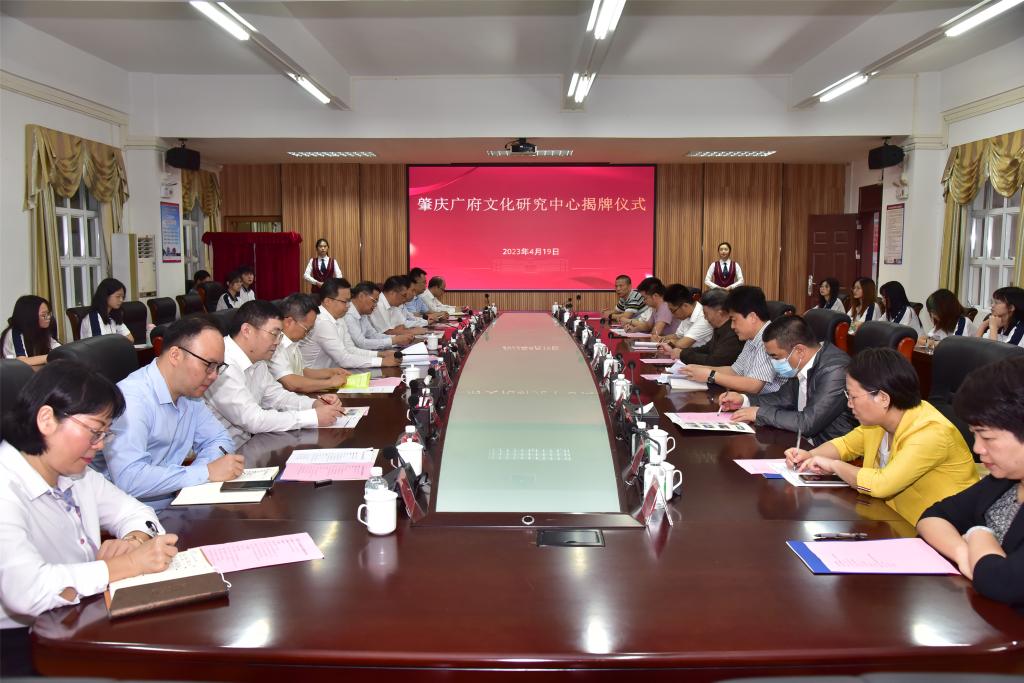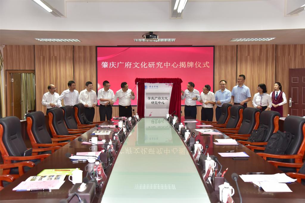 陈晓建、吴业春、胡文涛、李卫明、程彦春、黄兴、杨雪梅、李朝军等领导嘉宾共同为“肇庆广府文化研究中心”揭牌。