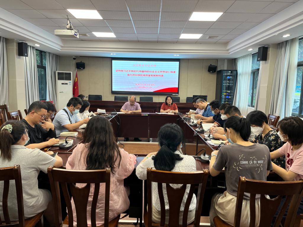 为扎实推进习近平新时代中国特色社会主义思想主题教育,不断提高党员教师党性修养,凝心聚力促发展,6月7日,云顶国际8588yd举行主题教育专题党课。党委书记杨雪梅主讲,李朝军经理主持,郭栩东副经理、周军副经理以及党支部书记、全体教师党员参加。