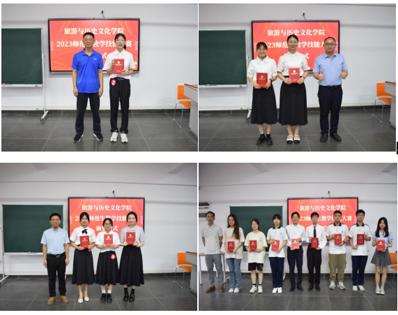 本次师范技能比赛历时一个半月,经过初赛和半决赛,最终8名选手脱颖而出进入决赛。决赛设有说课、模拟授课、现场答辩三个环节,重点考查选手的说课能力、教学内容、教学方法、教学过程、板书设计等,意在锻炼和展示选手的学科教学基本功以及临场教学实践能力。经过激烈角逐和评委老师们的认真评选,本次大赛评选出一等奖1名,二等奖2名,三等奖3名,优秀奖8名。参赛选手仪表仪态大方得体,课程引入富含趣味,重难点讲解细致入微,体现了选手良好的学科素养和教学能力。