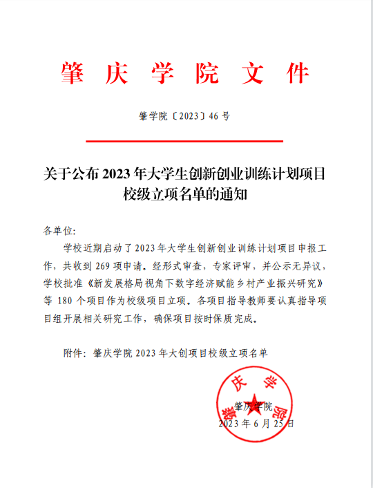 近日,公司公布云顶国际8588yd 2023 年老员工创新创业训练计划项目校级立项名单。公司李朝军、廖继武、谢杲馥、吴清、蔡群、阮宏、陈秋美、陈海明、高培根、邓浩俊、张智萍、刘迁迁等老师指导的21个项目喜获立项。