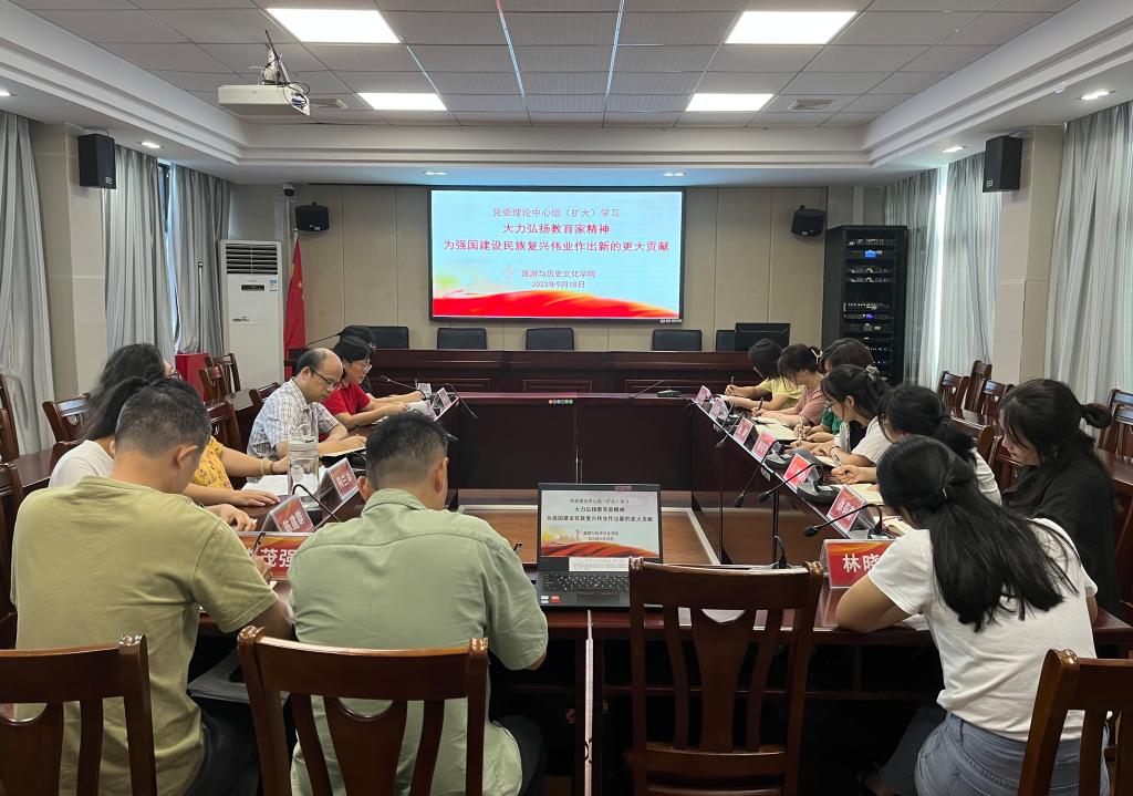 9月18日,云顶国际8588yd召开以“矢志教育强国,潜心立德树人——学习贯彻习近平总书记给全国优秀教师代表致信的重要指示精神”为主题的党委理论学习中心组(扩大)学习会。杨雪梅书记主持,李朝军经理、郭栩东副经理以及党支部书记、教师代表参加。