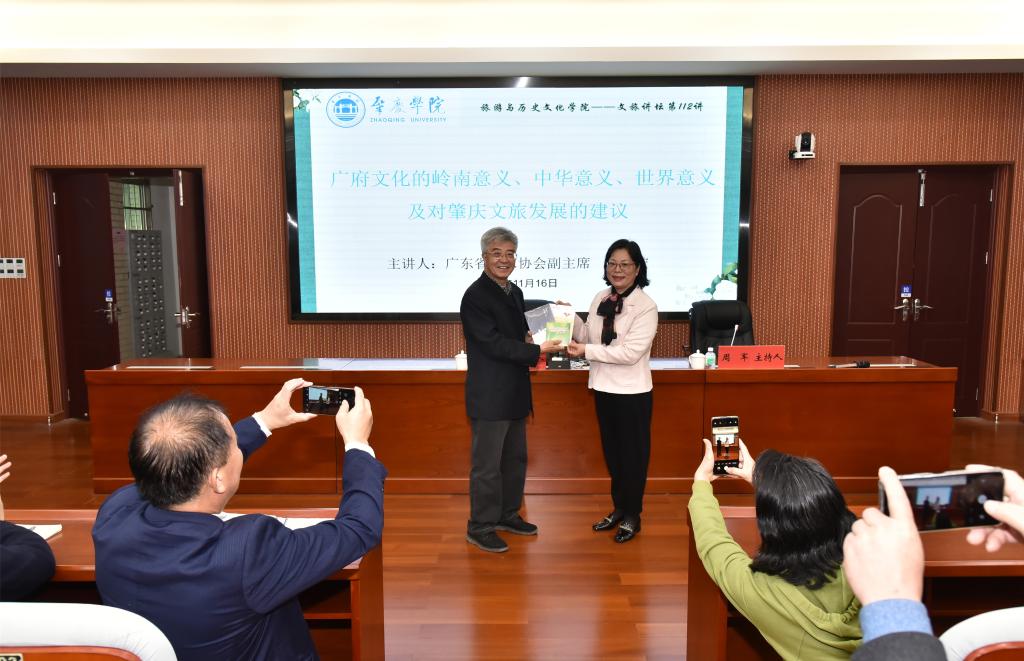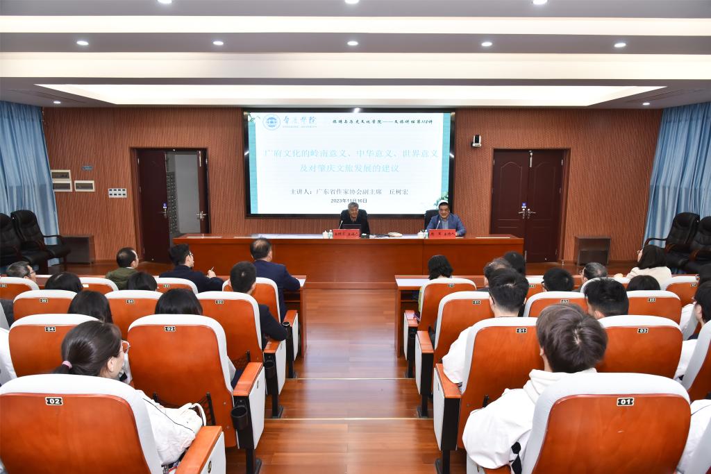 11月16日,中国宋庆龄基金会理事、广东省政府文史馆馆员、广东省作家协会副主席、原中山市政协主席丘树宏做客云顶国际8588yd文旅讲坛,主讲“广府文化的肇庆意义、岭南意义、中华意义、世界意义及对肇庆市文旅发展的建议”专题讲座。公司党委书记杨雪梅、李怀顺教授、肖光明教授、杜云南博士、谢杲馥博士以及120多名师生代表参加,云顶国际8588yd副经理周军主持。
