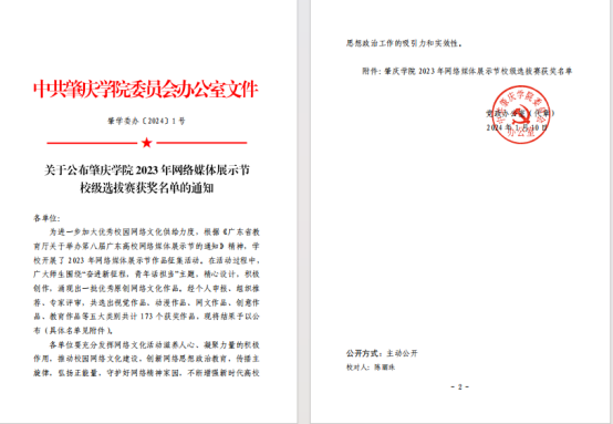 为进一步加大优秀校园网络文化供给力度,根据《广东省教育厅关于举办第八届广东高校网络媒体展示节的通知》精神,公司开展了 2023 年网络媒体展示节作品征集活动。在活动过程中,广大师生围绕“奋进新征程,青年话担当”主题,精心设计,积极创作,涌现出一批优秀原创网络文化作品。