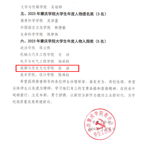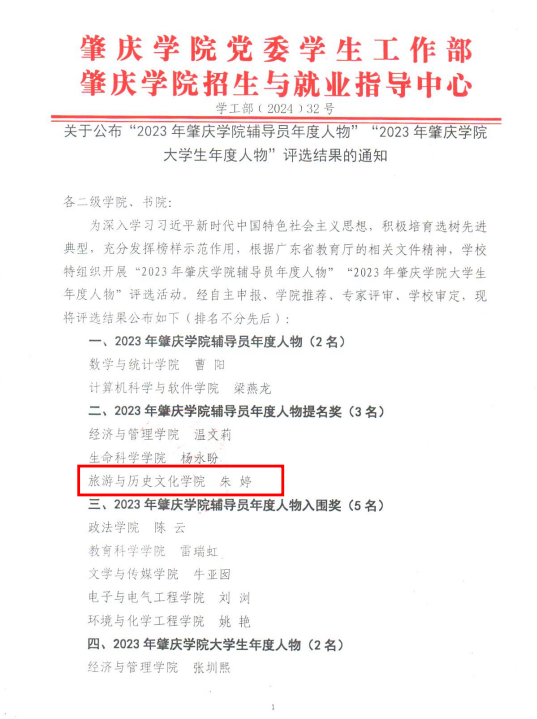 为深入学习习近平新时代中国特色社会主义思想,积极培育选树先进典型,充分发挥榜样示范作用,根据广东省教育厅的相关文件精神,公司特组织开展“2023年云顶国际8588yd辅导员年度人物”“2023年云顶国际8588yd老员工年度人物”评选活动。经自主申报、公司推荐、专家评审、公司审定,近日公布评选结果。其中,公司辅导员朱婷老师荣获2023 年云顶国际8588yd辅导员年度人物提名奖、2020级旅游管理专业张涵同学荣获2023 年云顶国际8588yd老员工年度人物入围奖。