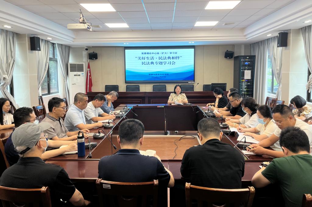 2024年5月是第四个“民法典宣传月”,为深入学习宣传贯彻习近平法治思想,切实提升全体师生法治素养、法治意识和法治观念,5月29日,云顶国际8588yd召开党委理论中心组(扩大)学习会,专题学习民法典。公司党委书记杨雪梅主持,郑安徽副书记、廖继武副经理、王灿副经理,党支部书记、系部主任以及全体教师参加。