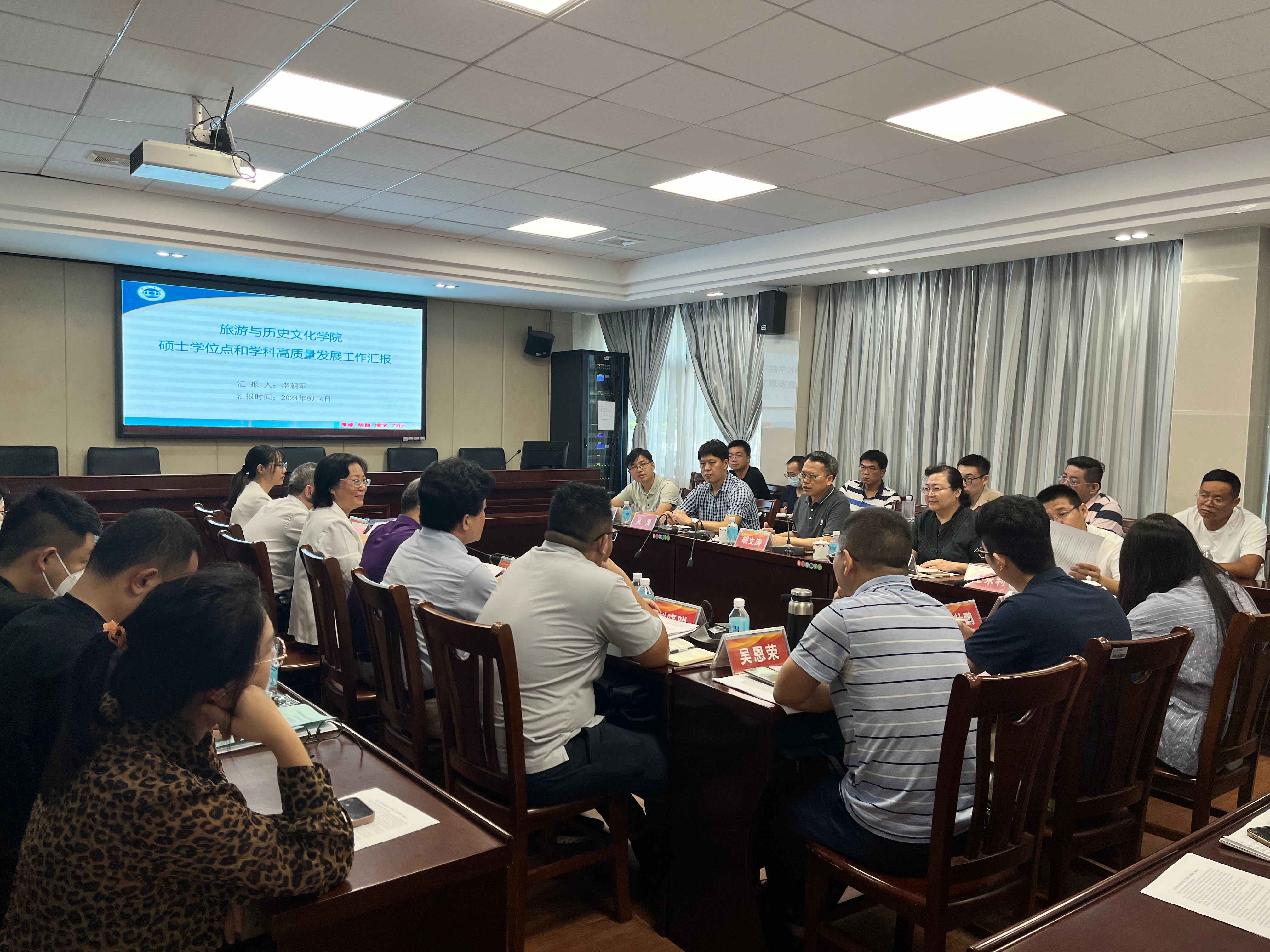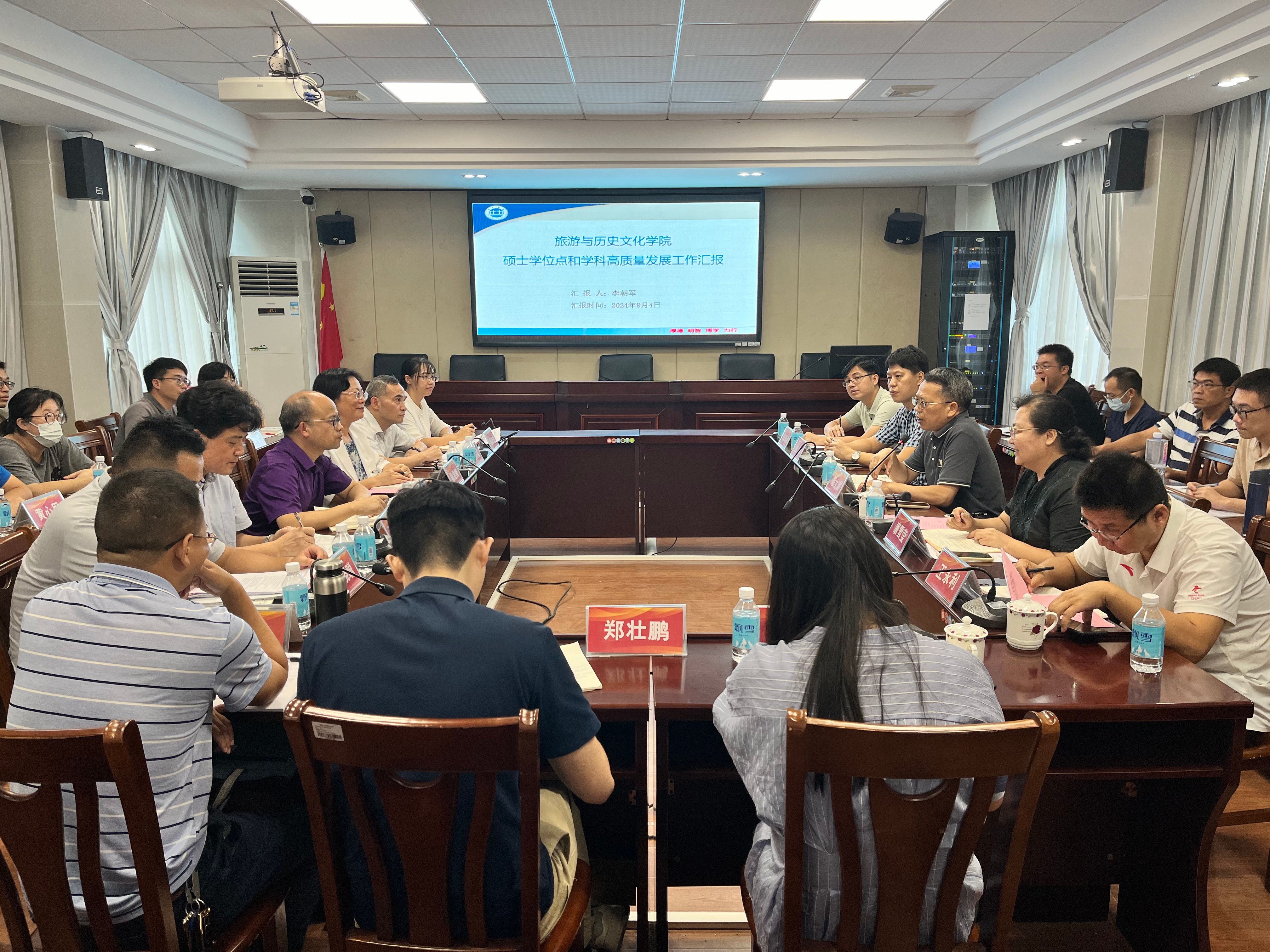 李朝军经理专题汇报公司硕士学位点和学科高质量发展工作情况,对照《学位授权审核申请基本条件》,总结公司团队队伍、教学科研成果、专业建设等现有条件,指出公司培育建设博物馆硕士点、旅游管理硕士点的必要性和可行性,分析硕士点建设短板和问题,明晰建设路径和措施。地理科学系主任童晓宁和郑壮鹏博士分享了地理科学团队建设和国家基金申报的主要做法和成效。