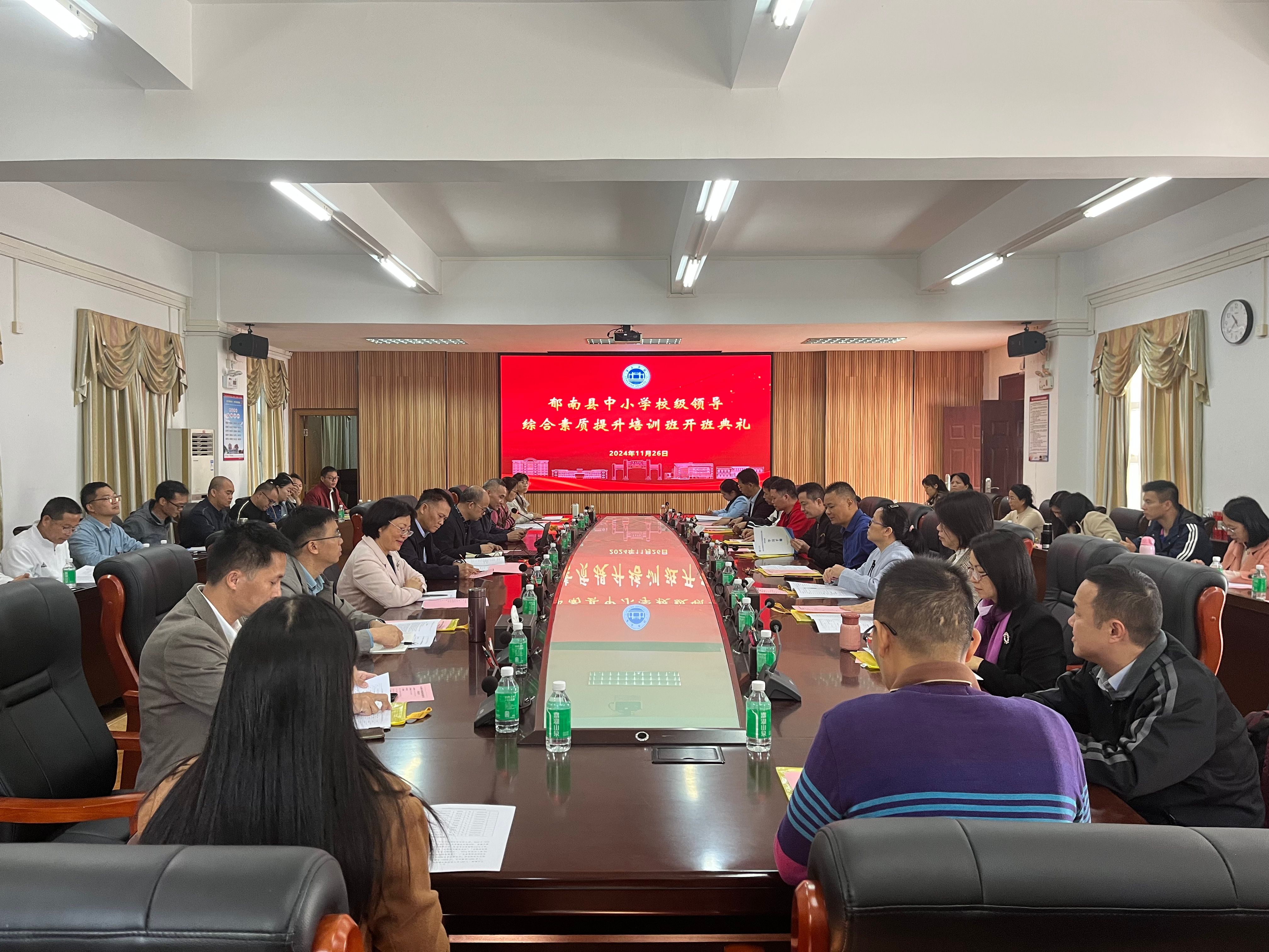 为深入推进广东省“双百行动”,助力推进“百千万工程”,帮扶郁南县基础教育,11月26日,郁南县中小公司级领导综合能力培训班在公司举行开班仪式。广东工业大学帮扶工作队队长刘怡军,公司党委书记杨雪梅、经理李朝军、副经理廖继武,郁南县教师发展中心教师发展室主任黄家斌以及来自郁南县中小公司的45名董事长、园长参加。