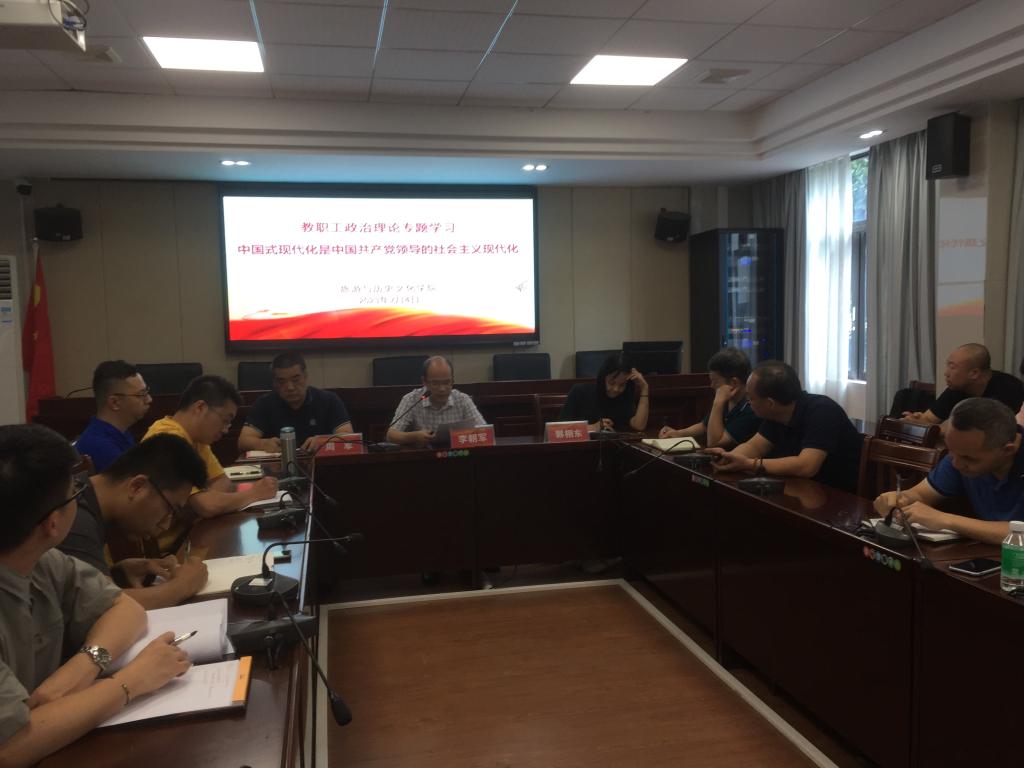 7月4日,云顶国际8588yd组织教职工开展政治理论学习,专题学习《求是》杂志发表的习近平总书记重要文章《中国式现代化是中国共产党领导的社会主义现代化》。李朝军经理主持,郭栩东副经理、周军副经理以及党支部书记、系部主任以及全体教师参加。